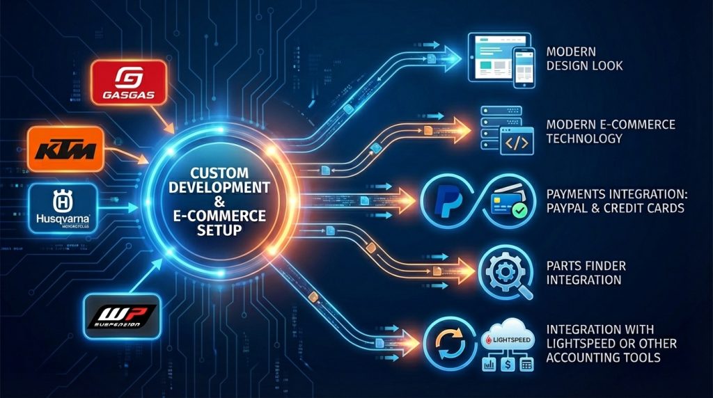 We have great experience with e-commerce platforms designed for motorsports dealers with the best value for money.